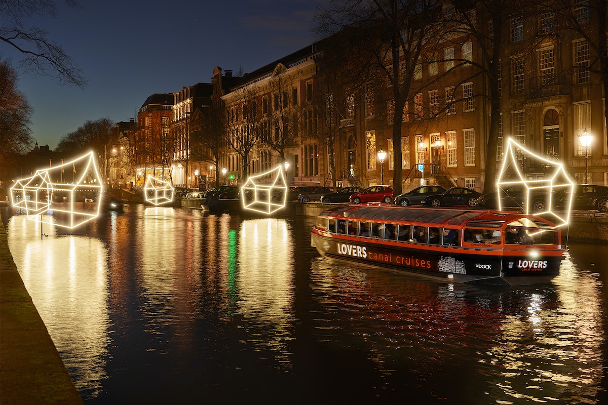 - Nehmen Sie an einer beleuchteten Grachtenrundfahrt im Rahmen des Amsterdam Light Festival teil