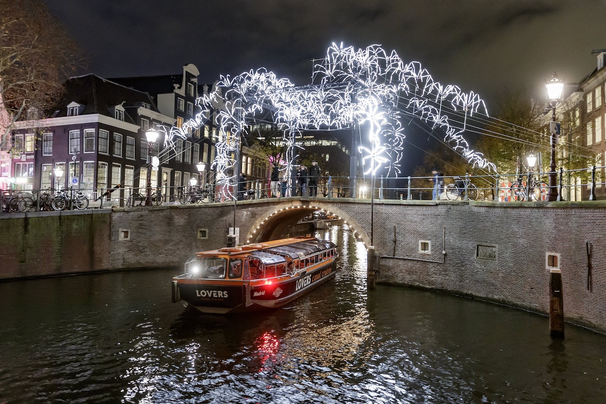 Jedes Jahr schmückt das Amsterdam Light Festival die Grachten der Stadt mit thematischen Lichtinstallationen von Künstlern aus der ganzen Welt. Diese glitzernden Kunstwerke lassen sich am besten vom Wasser aus genießen, da man so einen uneingeschränkten Blick und die besten Fotomöglichkeiten hat.