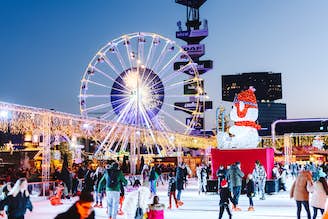 Erleben Sie die glitzernde Verwandlung des RAI Amsterdam im Innen- und Außenbereich, wenn es im Jahr 2023 ganz auf Weihnachten eingestellt ist! Schlittschuhlaufen unter freiem Himmel, Blick auf Amsterdam vom Riesenrad aus und die Möglichkeit zum Rodeln!